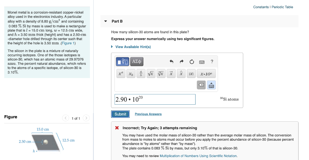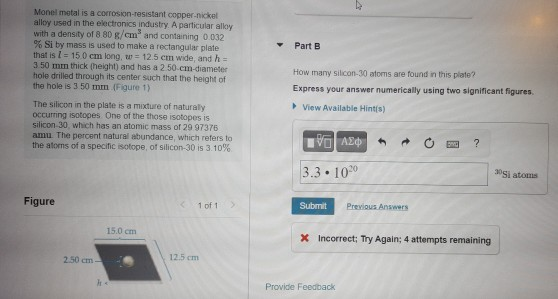 The silicon in the plate is a mixture of naturally occurring isotopes. What is the volume of this plate B. The question tells us that 310of silicon atoms are of the silicon-30 isotope.